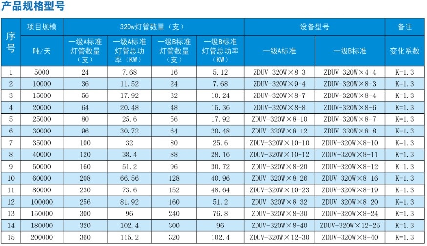 我們根據(jù)以上要求所要達到的出水指標,確定所需功率,由所需功率再根據(jù)水渠結(jié)構(gòu),確定燈管的布置結(jié)構(gòu),所流過污水均能達到規(guī)定照射劑量,出水達標。