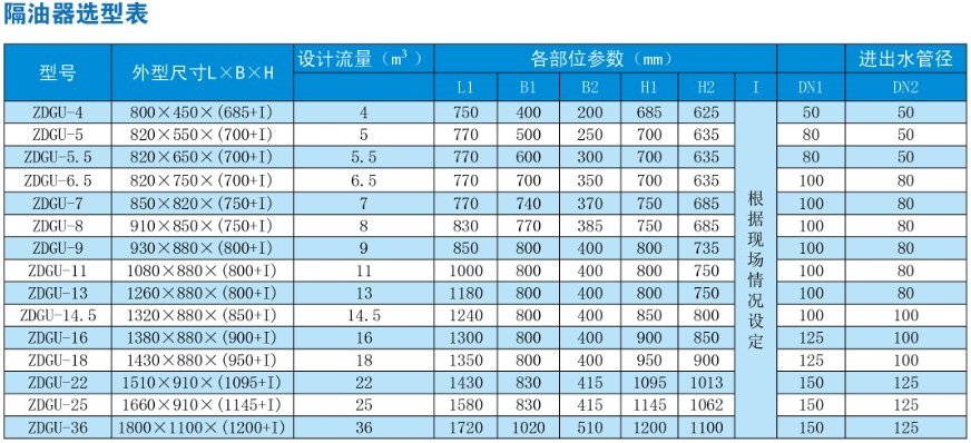 機(jī)械隔油器系列的各項(xiàng)技術(shù)參數(shù)指標(biāo)均按照國(guó)家標(biāo)準(zhǔn)《建筑給水排水設(shè)計(jì)規(guī)范》(GB50015-2003)中第4.8.2條設(shè)計(jì),大大提高了隔沒(méi)器的除油效果。