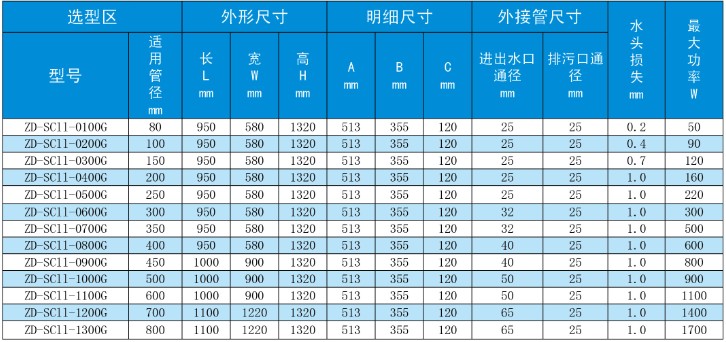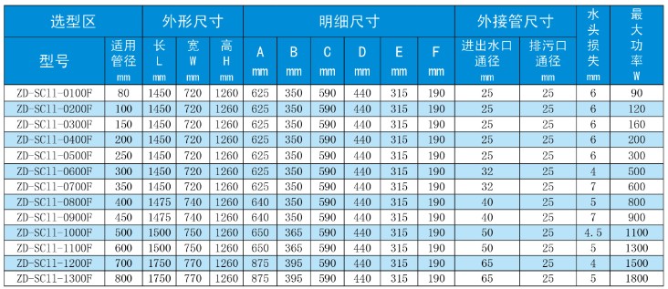 四、旁流水處理器F型技術(shù)參數(shù)